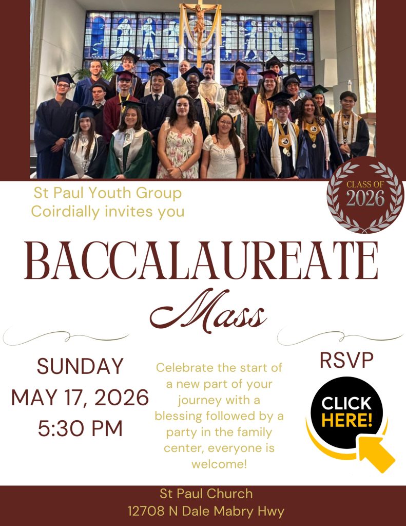 For more information, please contact Laura Wendt, High School Youth Minister, at: lwendt@stpaulchurch.com or call (813) 961-3023.
