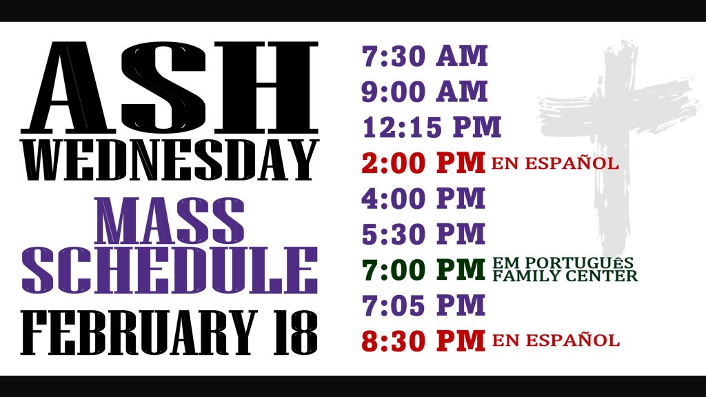 Ash Wednesday Mass Schedule – Feb. 18