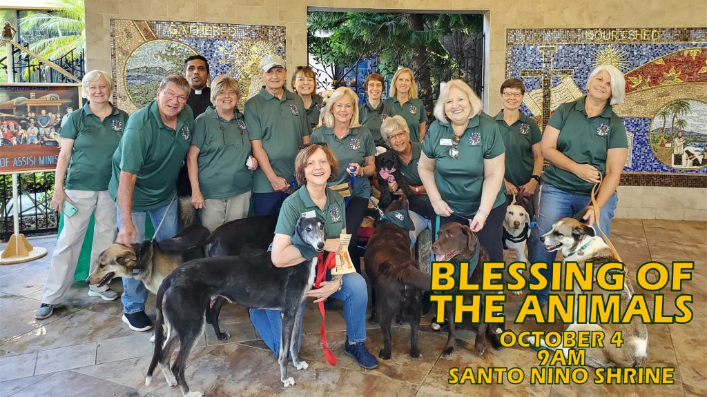 The annual Blessing of Animals will be held on Saturday, October 4, 2025, at 9:00am at the outdoor Santo Niño Shrine. All pet owners are encouraged to bring their animals. If you own a dog, please be sure that it is on its leash. Please also ensure that other animals are in a carrier, box or another type of containment device. Owners will have the option of receiving a St. Francis medal for their pet. This event is sponsored by the St. Francis of Assisi Ministry.