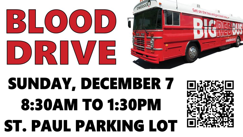 Give the Gift of Life! The oneblood Big Red Bus will be on the St. Paul campus taking blood donations on Sunday, December 7, from 8:30am to 1:30pm.