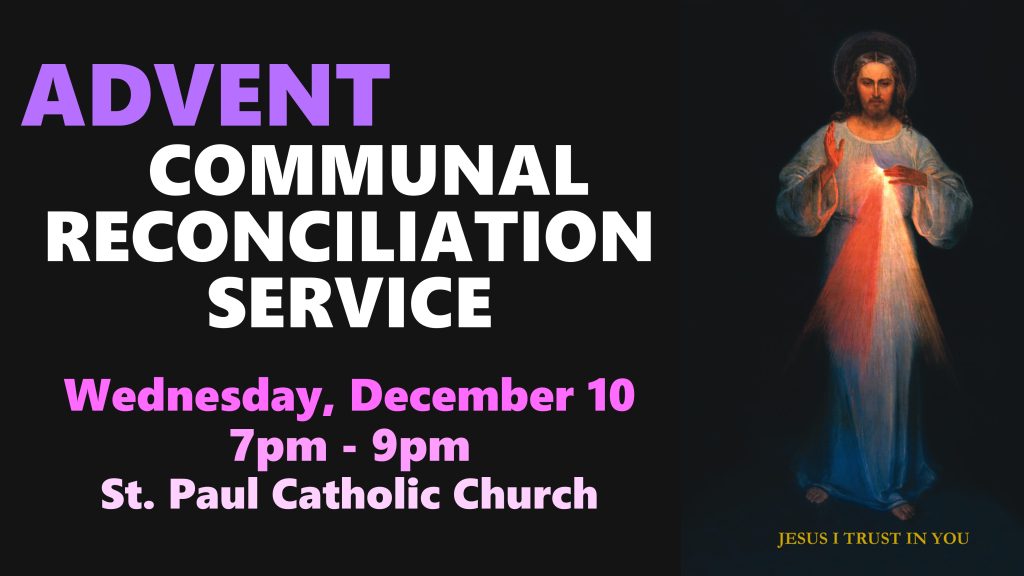 On Wednesday, December 10th, St. Paul Catholic Church will host a Communal Reconciliation Service from 7:00pm to 9:00pm in the main church. This special service offers parishioners an opportunity to reflect, seek forgiveness, and prepare their hearts during the Advent season. Multiple priests will be available for individual confessions creating a welcoming environment for spiritual renewal.