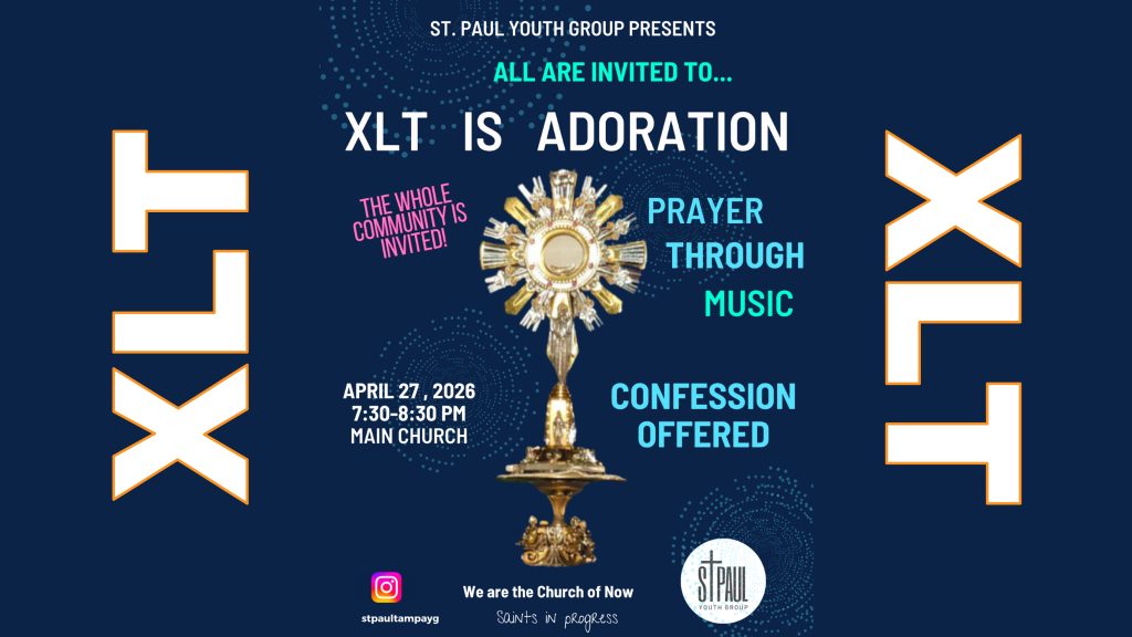 Experience an evening of grace at XLT (Exalt) on Monday, April 27 at St. Paul Catholic Church in Tampa, Florida. Beginning at 7:30pm, this powerful gathering invites all to encounter Christ in Eucharistic Adoration supported by uplifting music, heartfelt prayer, and inspiring testimony. Whether you are seeking renewal, peace, or simply a moment to rest in God’s presence, XLT offers a meaningful space to reconnect with your faith.
